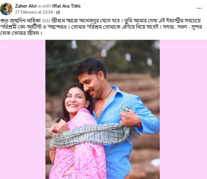 গত শুক্রবার তিথির জন্মদিন উপলক্ষে আলভী তার ভেরিফায়েড ফেসবুক পেজে একটি ছবি শেয়ার করেন, যেখানে দুজনকে ঘনিষ্ঠ ভঙ্গিতে দেখা যায়। ক্যাপশনে সহশিল্পী হিসেবে তিথির প্রশংসা করেন তিনি। এ পোস্ট ঘিরেই নতুন করে বিতর্কের সূত্রপাত হয়।