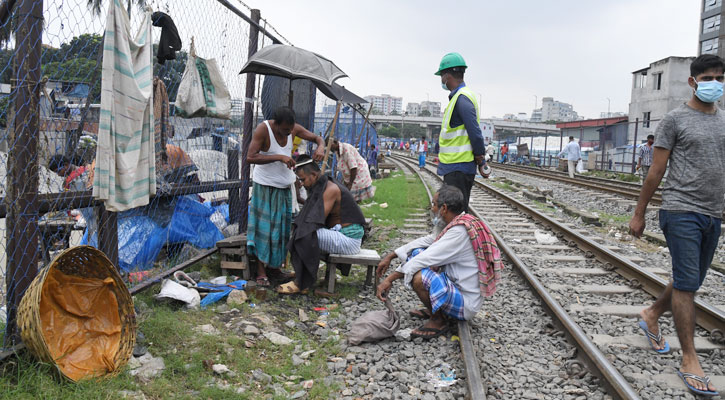 রাজধানীর কারওয়ান বাজার রেললাইনের পাশে প্রতিদিন ভ্রাম্যমান সেলুন বসে। সাধারণত নিম্ন আয়ের লোকজন এসব সেলুনে আসেন। শুক্রবার ছুটির দিন হওয়ায় আজ তারা ব্যস্ততম সময় পার করছেন।